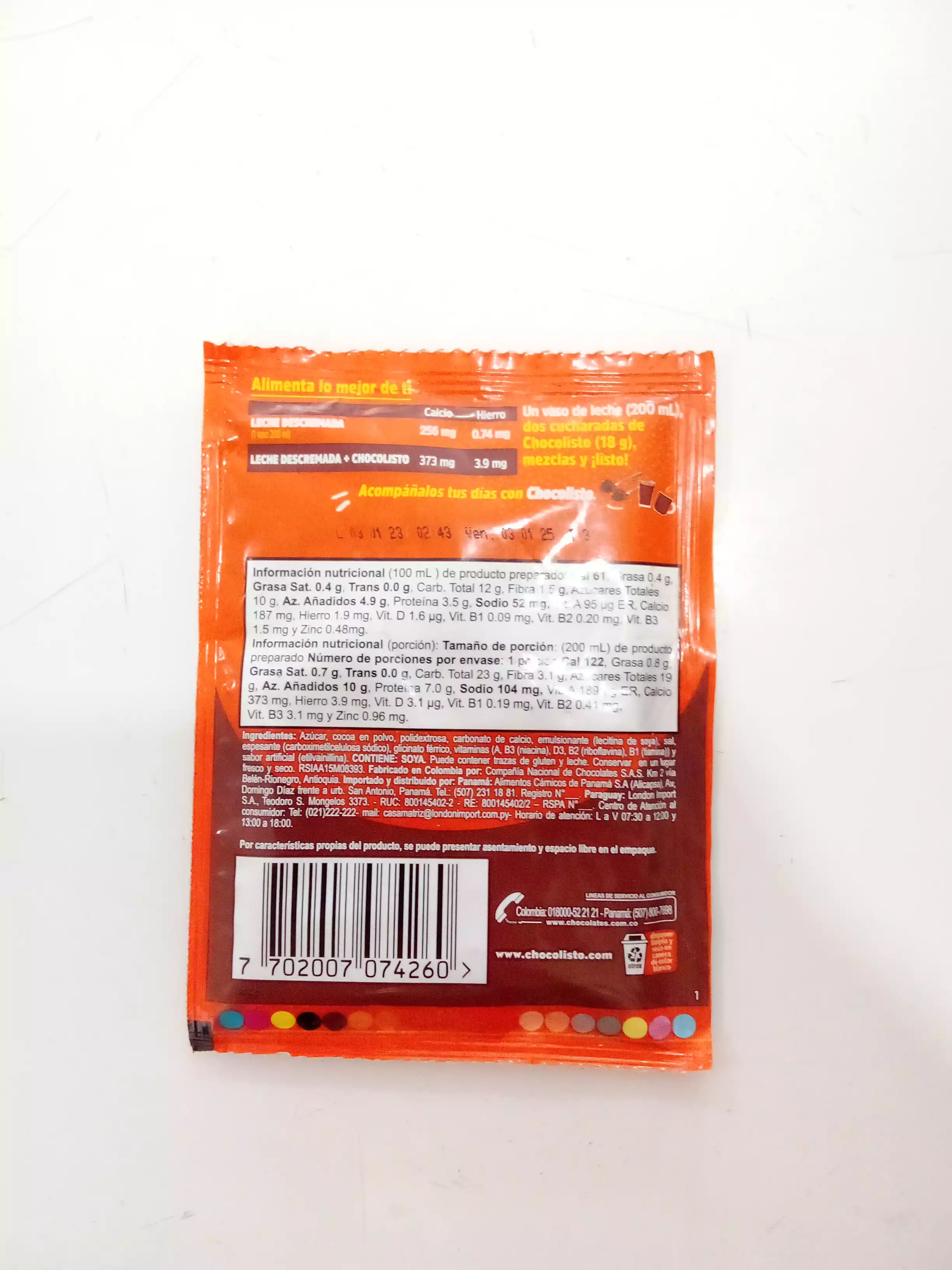 BEBIDAS - CHOCOLISTO CHOGOLATE DISPLAY X 18 GR X 24 UND