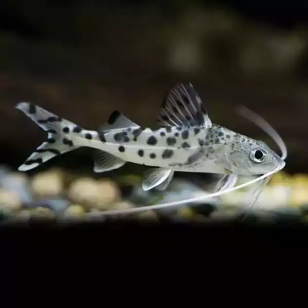 El Pez Gato Pictus es un pez activo que disfruta de nadar por todo el acuario. Es conocido por su energía y curiosidad, siempre explorando su entorno. Puede coexistir pacíficamente con otros peces de tamaño similar, pero es importante proporcionarle suficiente espacio para nadar. Es un pez gregario y se recomienda mantenerlo en grupos de al menos 3 individuos para promover su bienestar. El Pez Gato Pictus es carnívoro y se alimenta principalmente de alimentos vivos y congelados. Acepta alimentos comerciales en forma de pellets y escamas, pero se le debe proporcionar una variedad de alimentos vivos como gusanos, larvas de insectos y camarones para mantener una dieta equilibrada y estimular su comportamiento natural de caza. Es recomendable alimentarlo en porciones pequeñas varias veces al día para evitar la sobrealimentación. Pimelodus pictus, conocido comúnmente como el pez gato pictus, requiere un acuario espacioso con rocas, troncos y áreas de escondite. Prefiere aguas suaves a moderadamente duras y una temperatura cálida. La decoración del acuario debe incluir rocas y escondites, ya que son peces nocturnos y disfrutan de lugares para esconderse durante el día. Es fundamental mantener la calidad del agua y proporcionar una dieta variada. La especie vive y prospera en un rango de temperatura entre los 27-29 ºC, pH de 6,7–7,3 y dureza del agua de 15-50°dH.