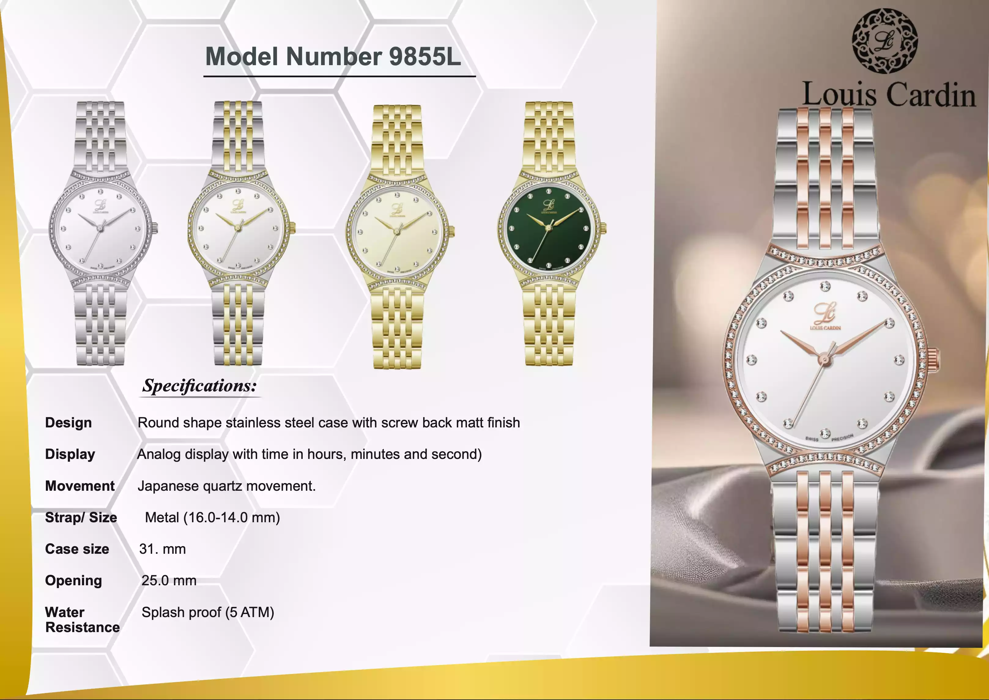 Louis Cardin Watch Model 9855 GOLD/GREEN Female